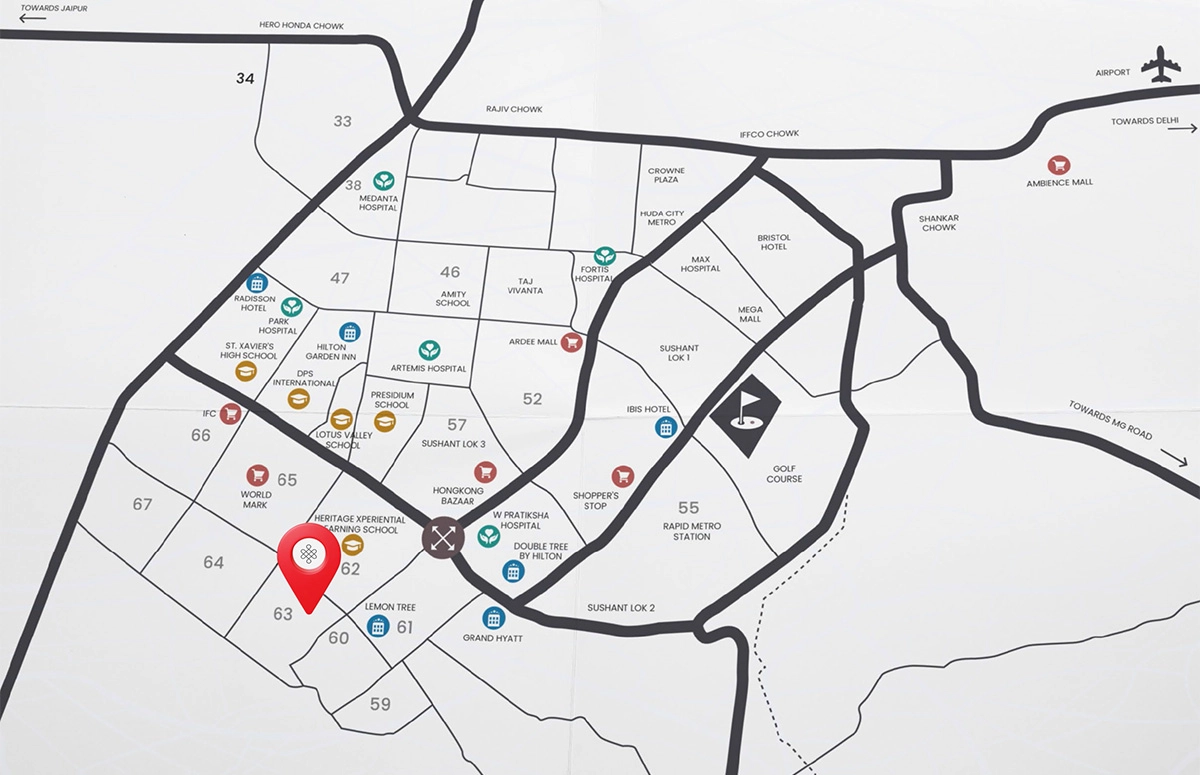 Prime Location: Situated on Golf Course Extension Road, Sector 63, Gurugram with excellent connectivity to Delhi and commercial hubs.