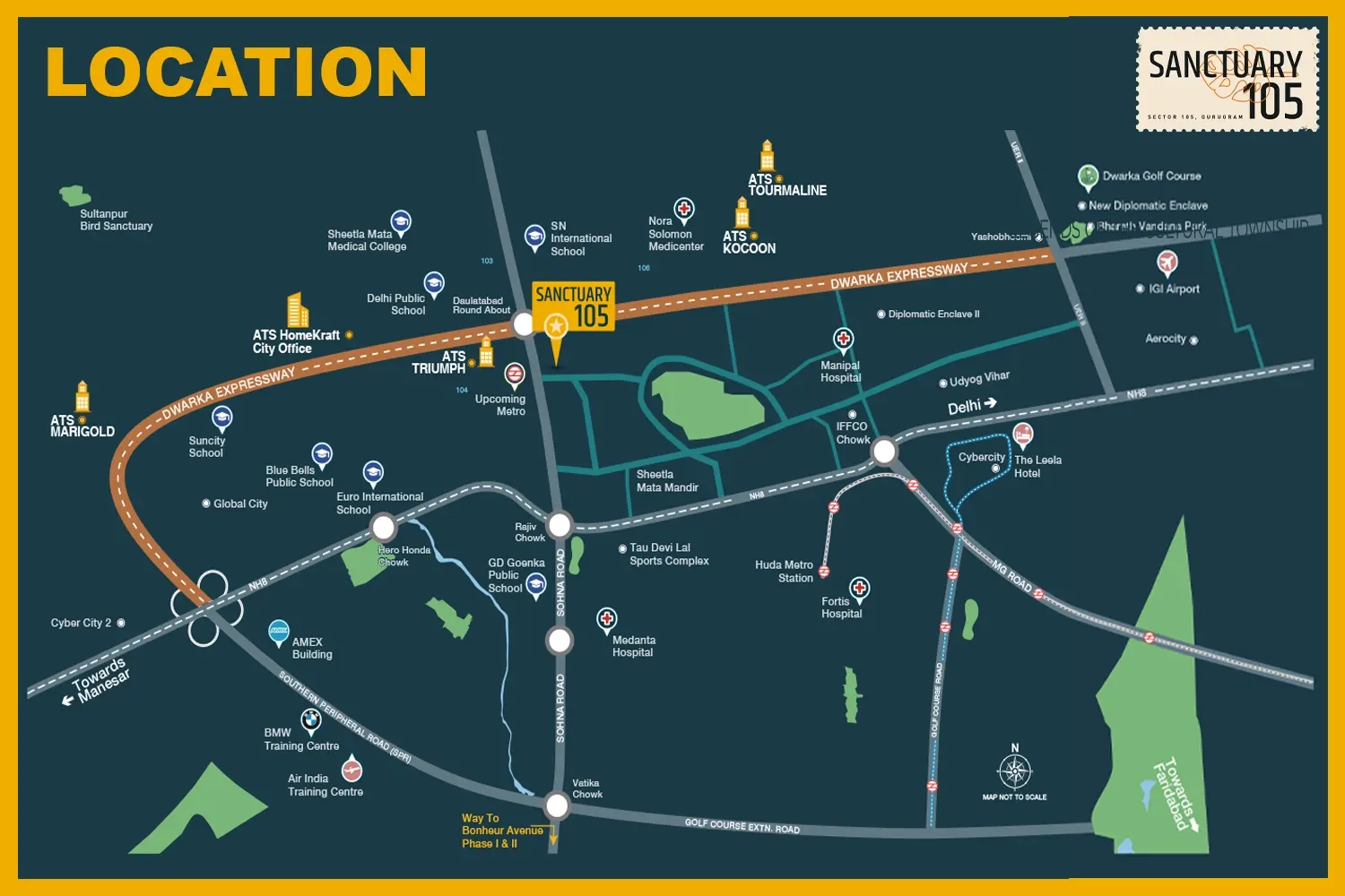 Prime Location: Sector 105, Dwarka Expressway, Gurugram — excellent connectivity to Delhi, IGI Airport, and major business hubs.