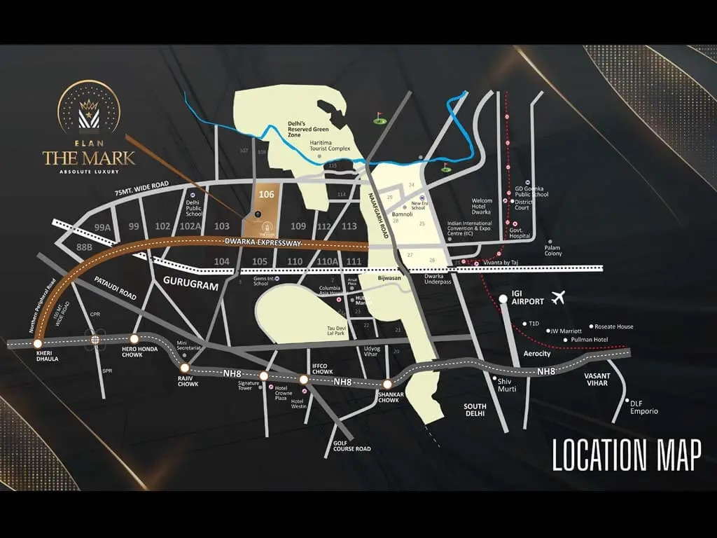 Elan The Mark is strategically situated in Sector 106 on the Dwarka Expressway, Gurugram