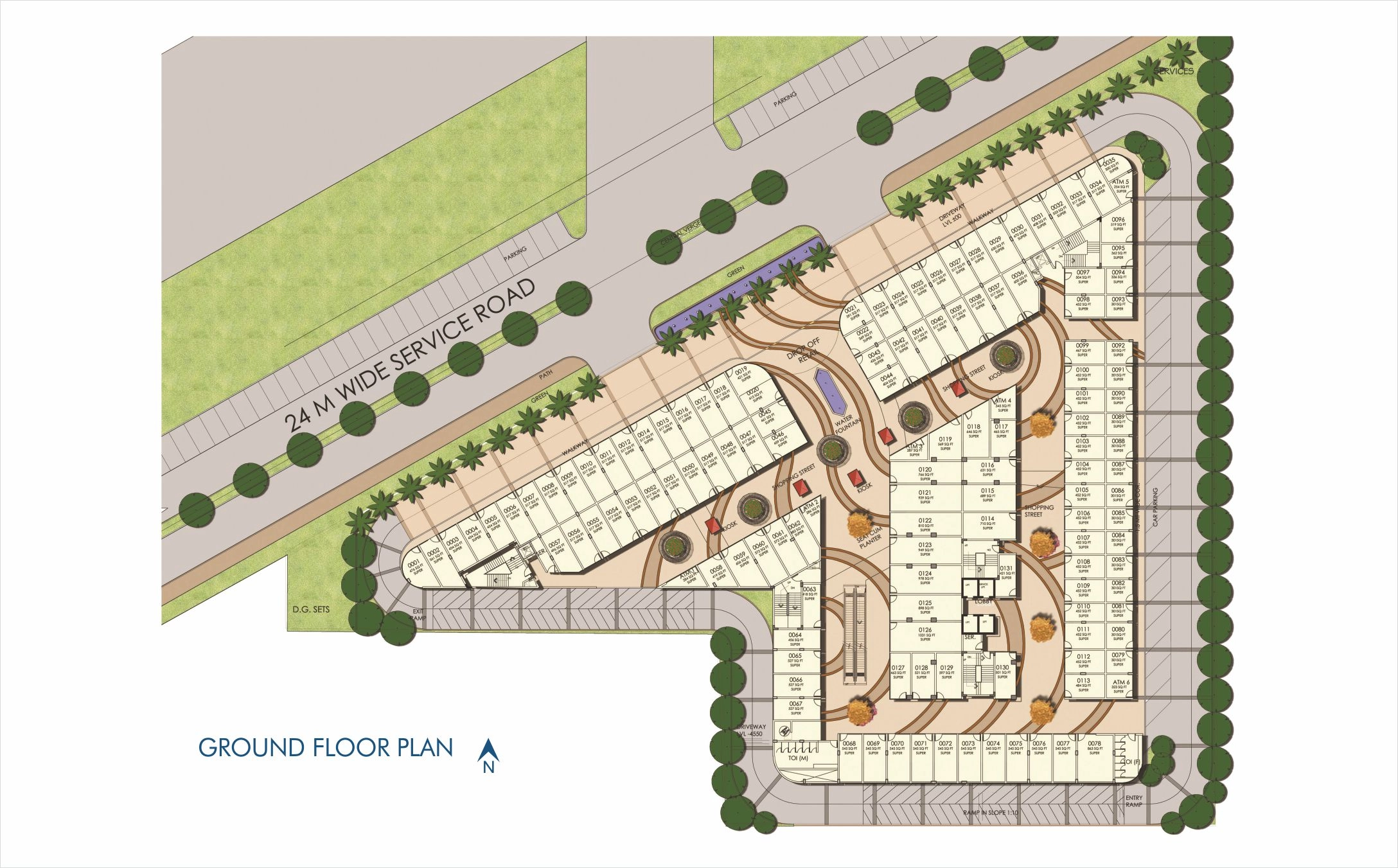 Triple-height road-facing shops for maximum exposure and footfall