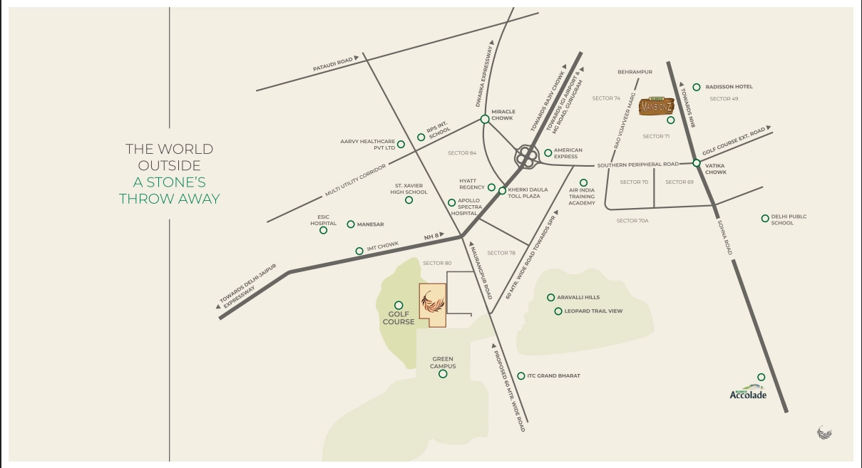 Excellent connectivity to NH-48, SPR Road & Dwarka Expressway