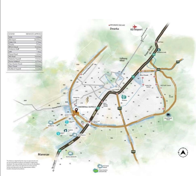Approx. 20 min drive to Indira Gandhi International Airport, close to Cyber Hub 2 and major commercial zones, making it ideal for professionals and frequent travelers.