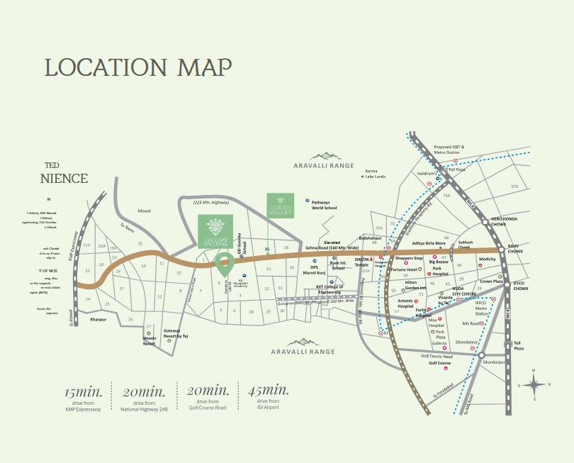 Excellent connectivity to Sohna Road, NH-48 & Golf Course Extension Road