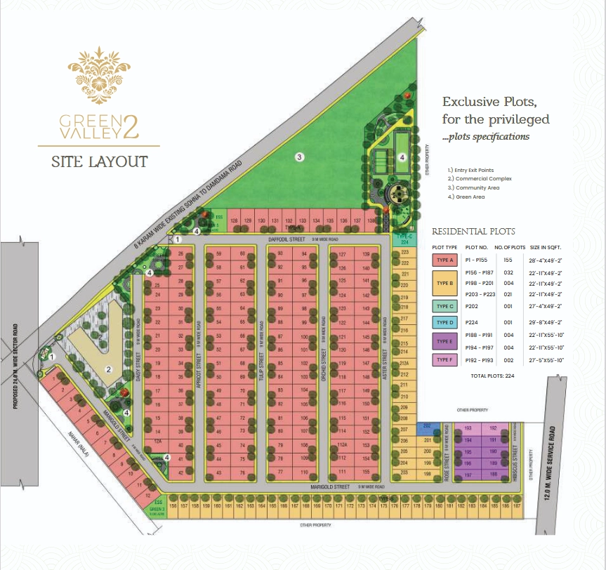 Spread across ~12.25 acres with 224 well-planned residential plots