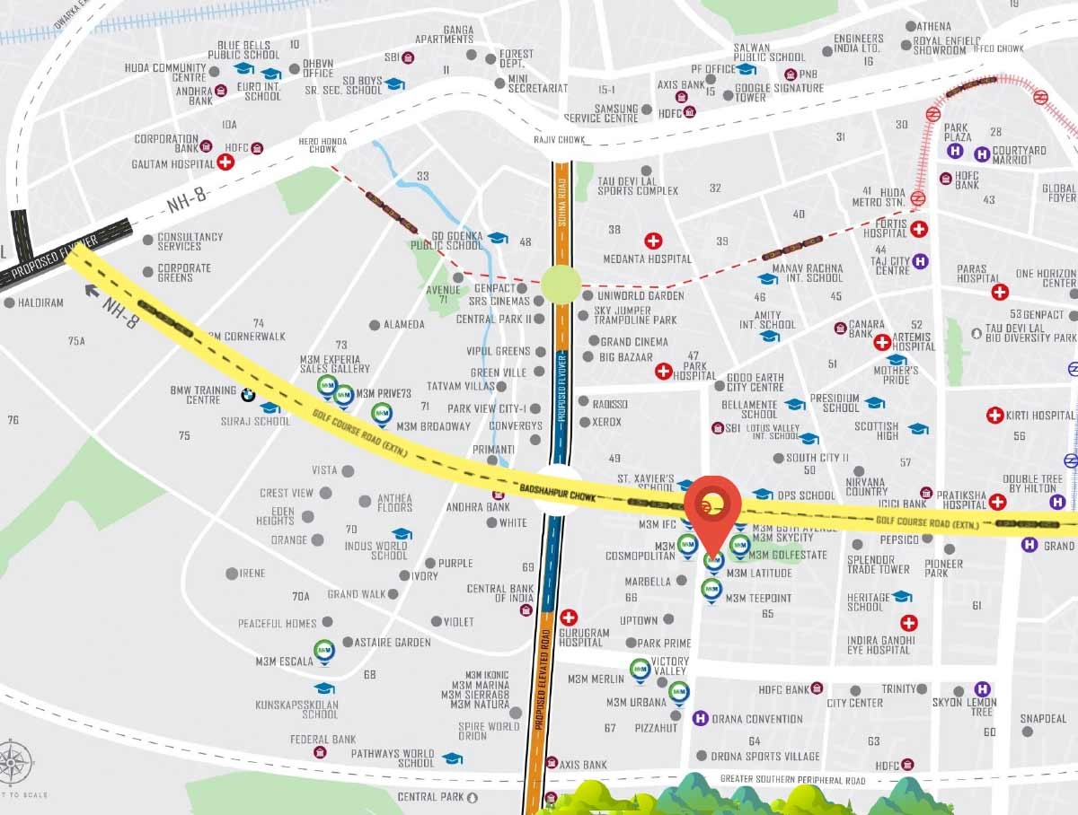 Easy access to Golf Course Road, NH-8, major business hubs, schools, hospitals, and IGI Airport (approx. 25 minutes).