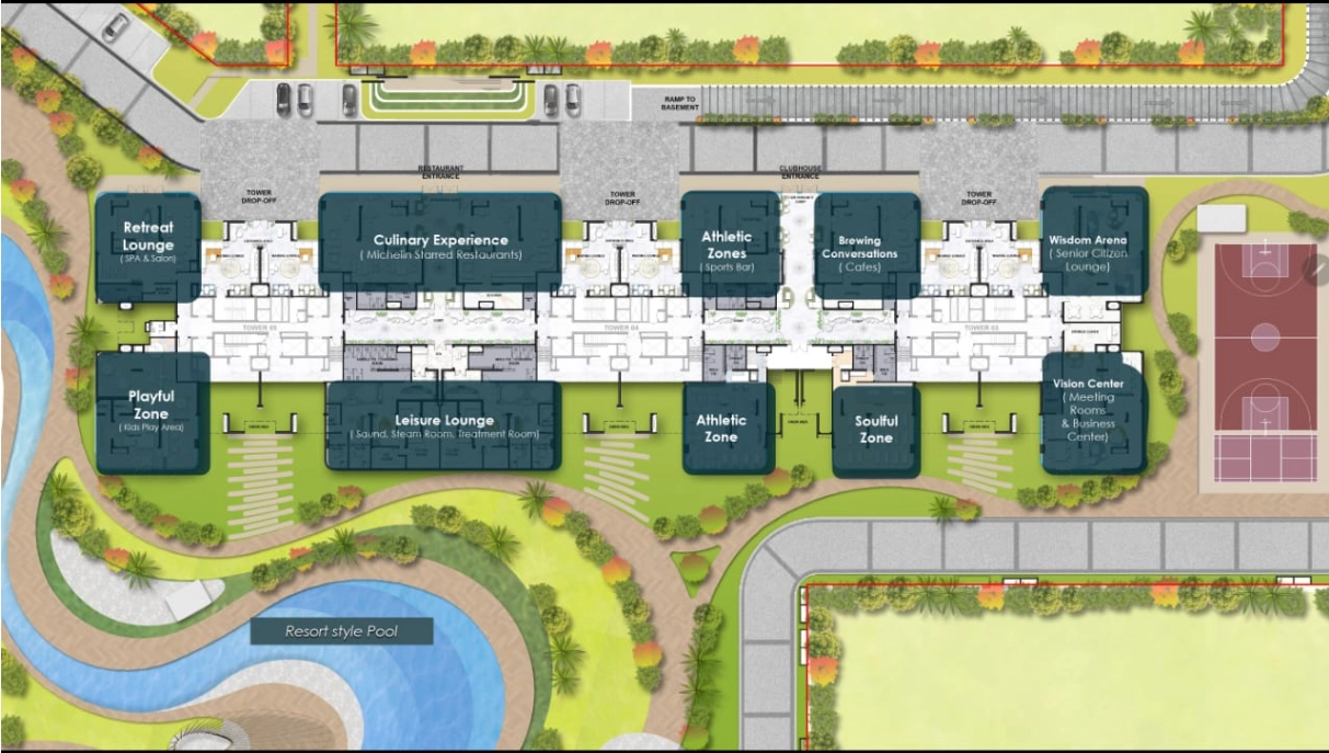 Grand clubhouse, spa & wellness zones, temperature‑controlled pools, sports courts, children’s play areas, landscaped gardens.