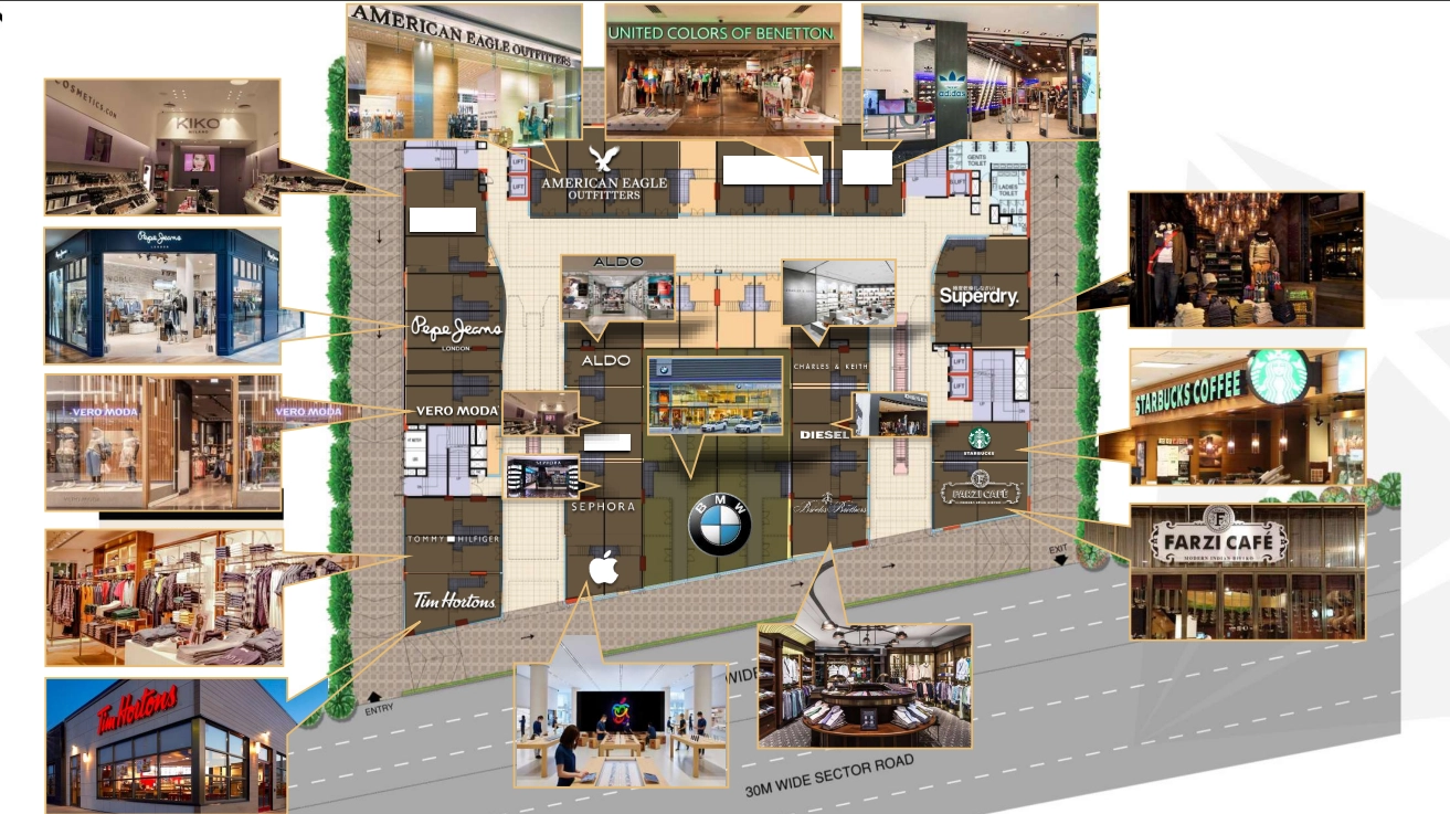 Prime frontage on MG Road: Ensures high visibility and footfall in Gurugram’s bustling retail & business district.