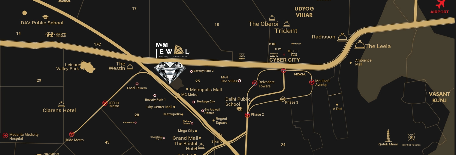 Near Commercial & Residential Hubs: Adjacent to Cyber City, corporate offices, premium residences, shopping malls like MGF Metropolitan Mall and DLF City Centre.