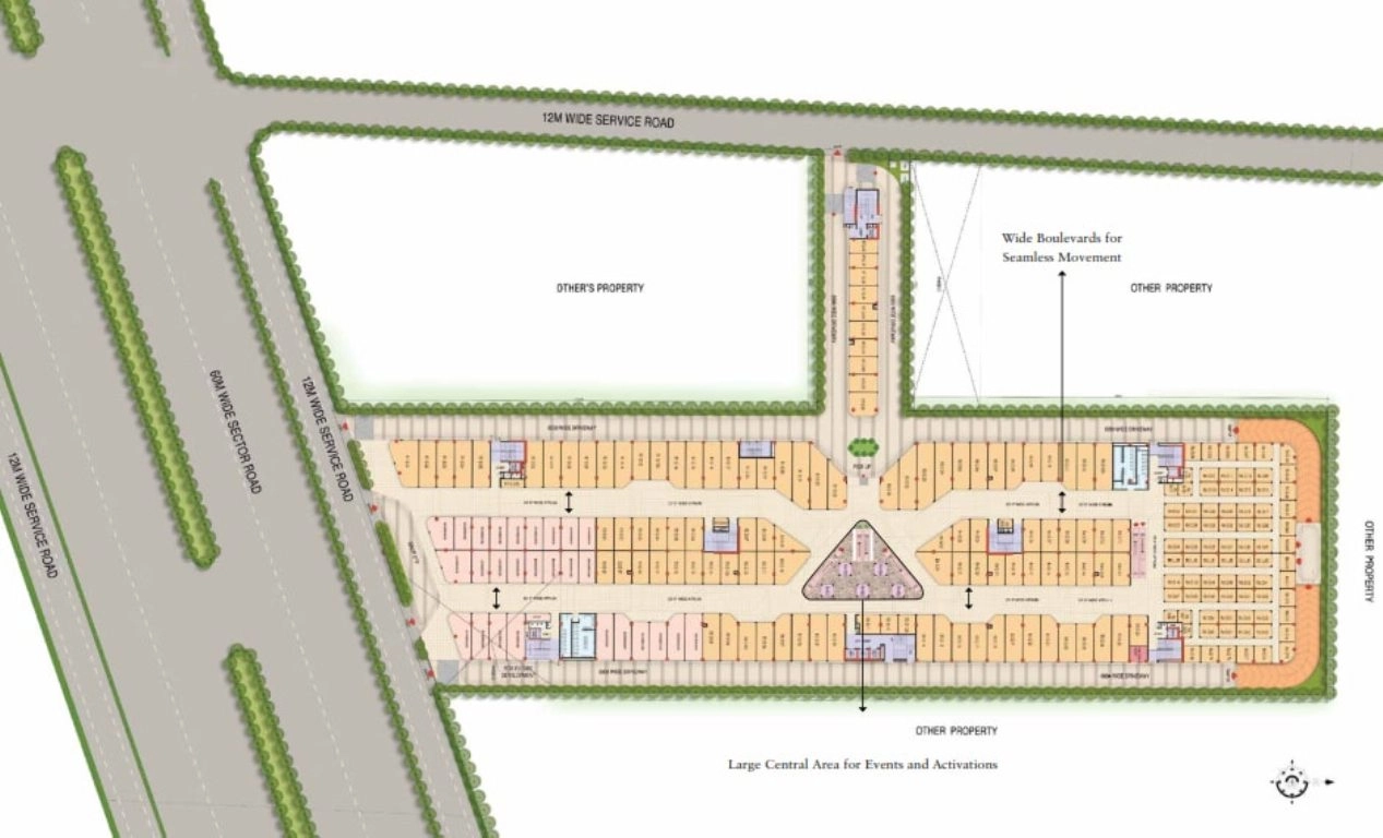 Multiple entry points and open-to-sky plazas for high visibility and footfall