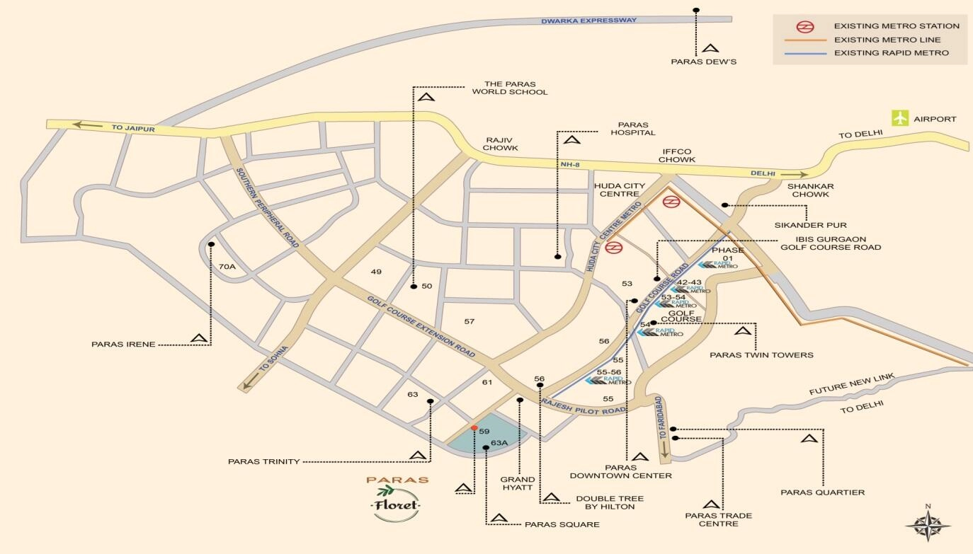 Situated along the Golf Course Extension Road, Paras Floret offers excellent connectivity to major business and entertainment hubs in Gurgaon and Delhi.