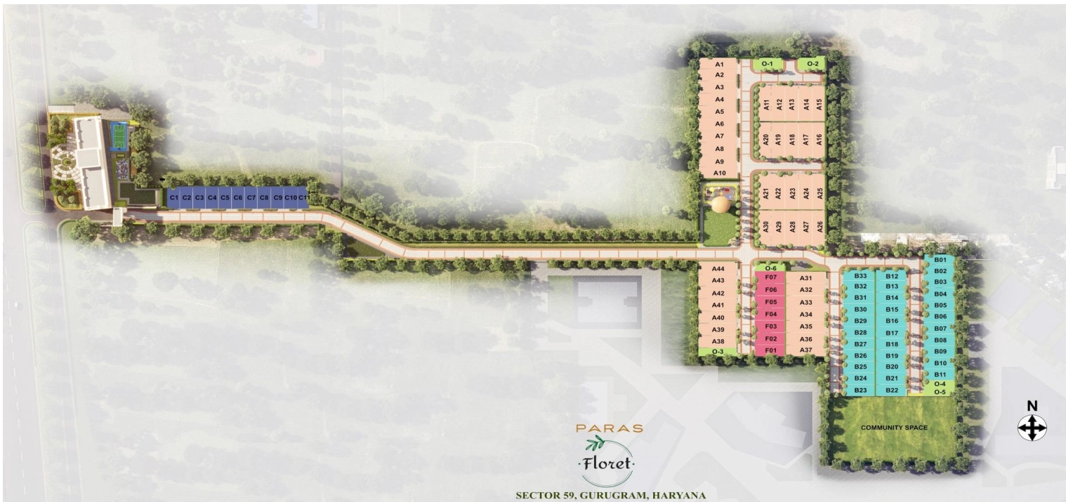 Paras Floret is a luxury low-rise residential development by Paras Buildtech, located in Sector 59 on Golf Course Extension Road, Gurugram. Spread across about 6.2β6.25 acres, the project offers exclusive 2 BHK and 3 BHK independent floors designed with spacious layouts, premium finishes, private terraces and optional basements, blending contemporary living with privacy in a gated community. With limited inventory and low-density planning, it creates a serene lifestyle complemented by lush landscaped gardens, a large clubhouse, swimming pool, gym, childrenβs play areas, and 24Γ7 security. Situated in a well-connected micro-market close to Rapid Metro, HUDA Metro, schools and business hubs, Paras Floret combines luxury, convenience and strong long-term value potential for homeowners and investors alike.