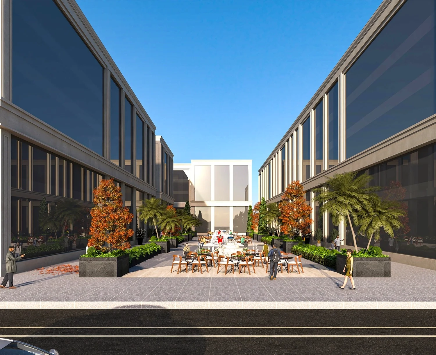 Wide road frontage, open layouts, and provision for ample parking.