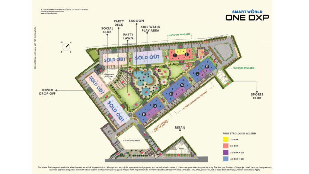 Smartworld One DXP is an ultra‑luxury residential project by Smartworld Developers, situated in Sector 113 on the Dwarka Expressway, Gurugram. Spread across approximately 16 acres, the development comprises multiple high‑rise towers (up to ~30 floors) offering premium 3.5 BHK and 4.5 BHK apartments with spacious layouts, three‑side open designs, and large balconies that maximize natural light and ventilation. Designed by UHA London with landscaping by Element Design Studio, Singapore, the project blends international aesthetics with functional luxury. Residents enjoy world‑class amenities including resort‑style clubhouse zones, swimming pools, observatory decks, 24×7 co‑working spaces, a rooftop jogging track, and specialized clubs for all age groups. With excellent connectivity to IGI Airport, metro stations, and key hubs, it offers an elevated lifestyle and strong investment potential.