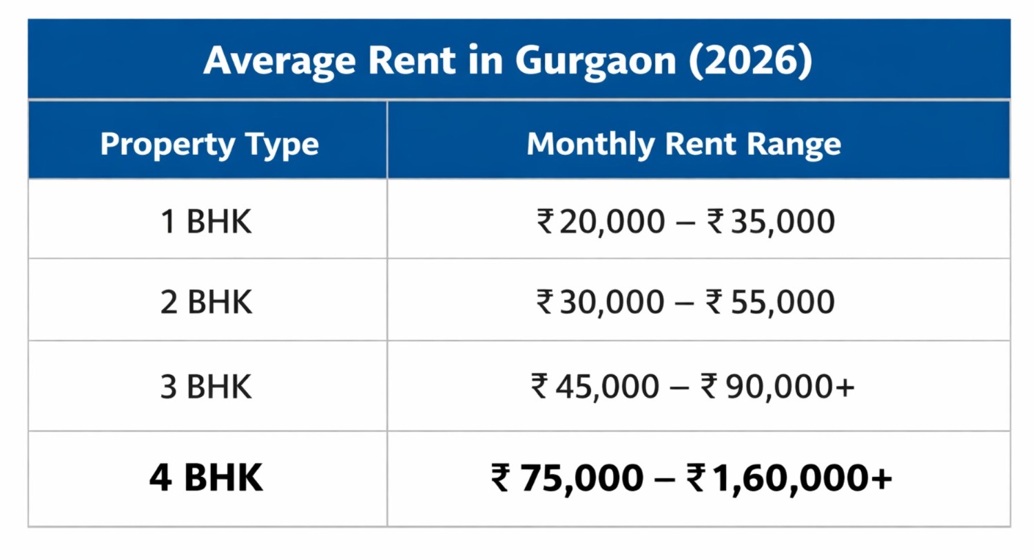 Prime areas like Golf Course Extension Road, Dwarka Expressway, Sector 57–67 command higher rents.