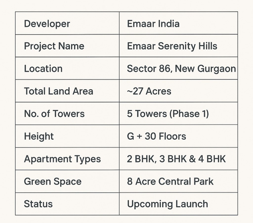 Emaar Serenity Hills is the latest residential launch by Emaar India one of the world’s most trusted and reputed real estate brands. Known for its architectural excellence in Dubai, London, and now India, Emaar is setting new benchmarks in luxury living.